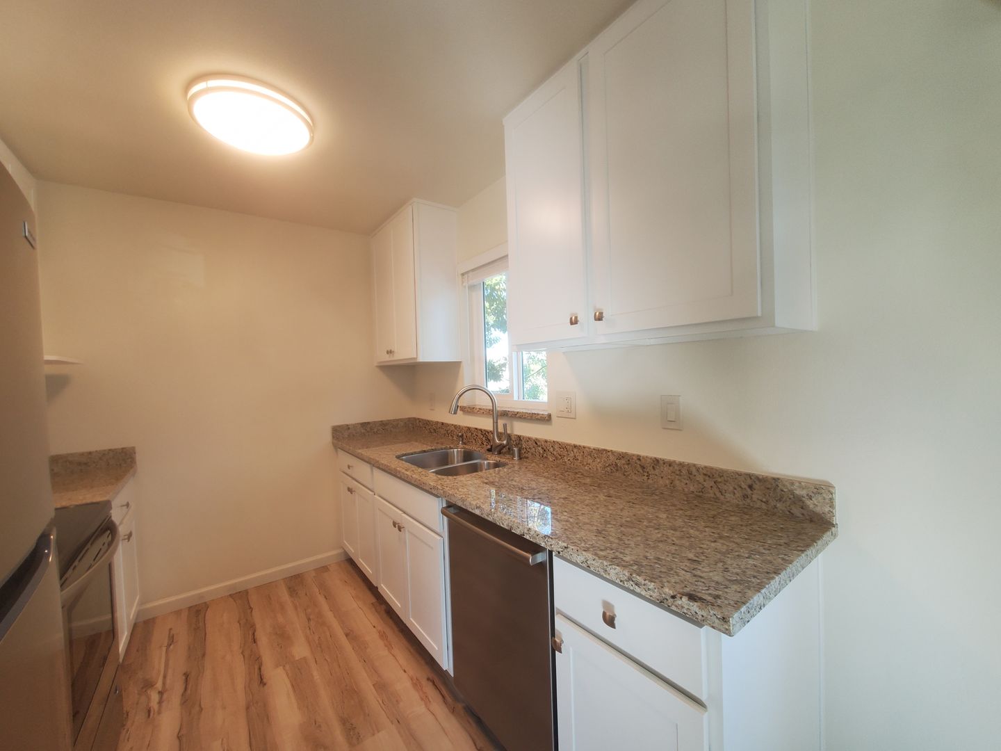 This lovely 1 bedroom 1 bath is a bright and sunny end unit, with light from three sides and front yard views. This remodeled apartment features an updated kitchen & bath, new appliances, and laminate floors. It is on the North side of Burlingame, close to Millbrae and walking distance to the BART, many shops and restaurants. Water and garbage are included as well as one assigned parking space. Laundry room on premises. 12 months please, no smoking, one or two cats allowed.