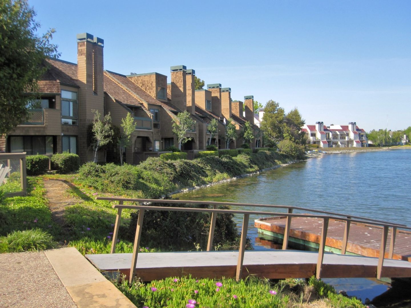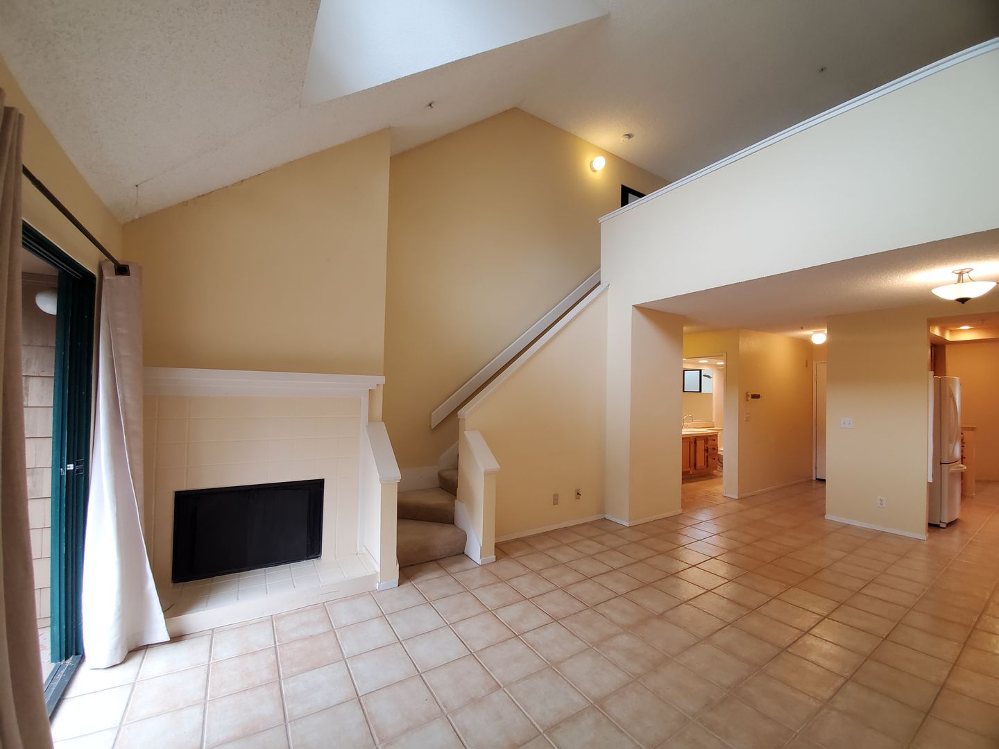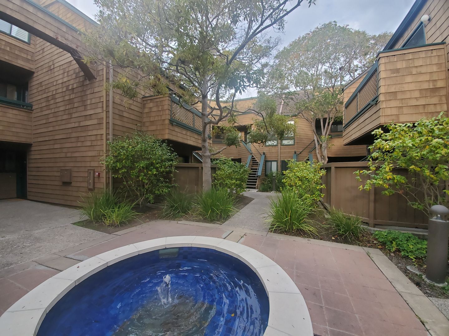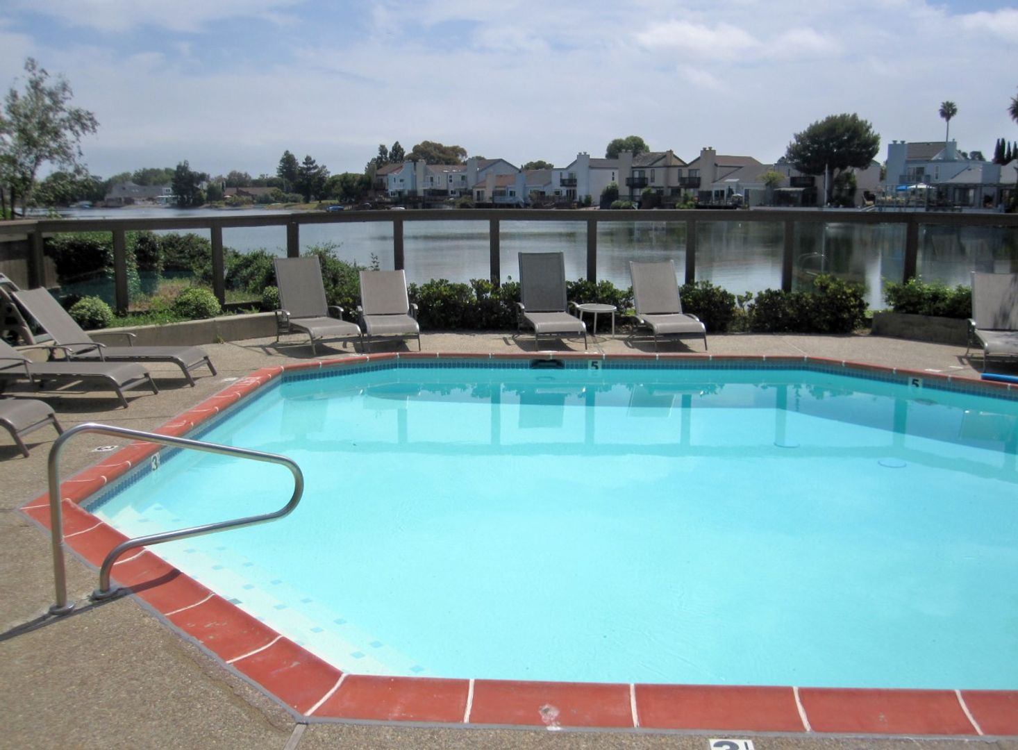This 2 bedroom, 1 bath in the desirable Pelican Cove complex of Redwood Shores, on the 2nd floor (stairs leading up to the unit). Enjoy wonderful amenities and grounds at the complex including pool, plentiful parking and access to a dock/trails along the water. The unit has high ceilings, master bedroom has a large walk in closet, 2nd bedroom is loft style with a large closet. Private washer dryer is just off of bathroom. Kitchen as small eat-in nook for table. Living room has a cozy wood burning fire place. Water and garbage are including along with 1 covered assigned parking space and use of amenities at complex. Fantastic location for easy commuting up and down the Peninsula or easy access to the bay trail. No pets, no smoking, 1 year lease