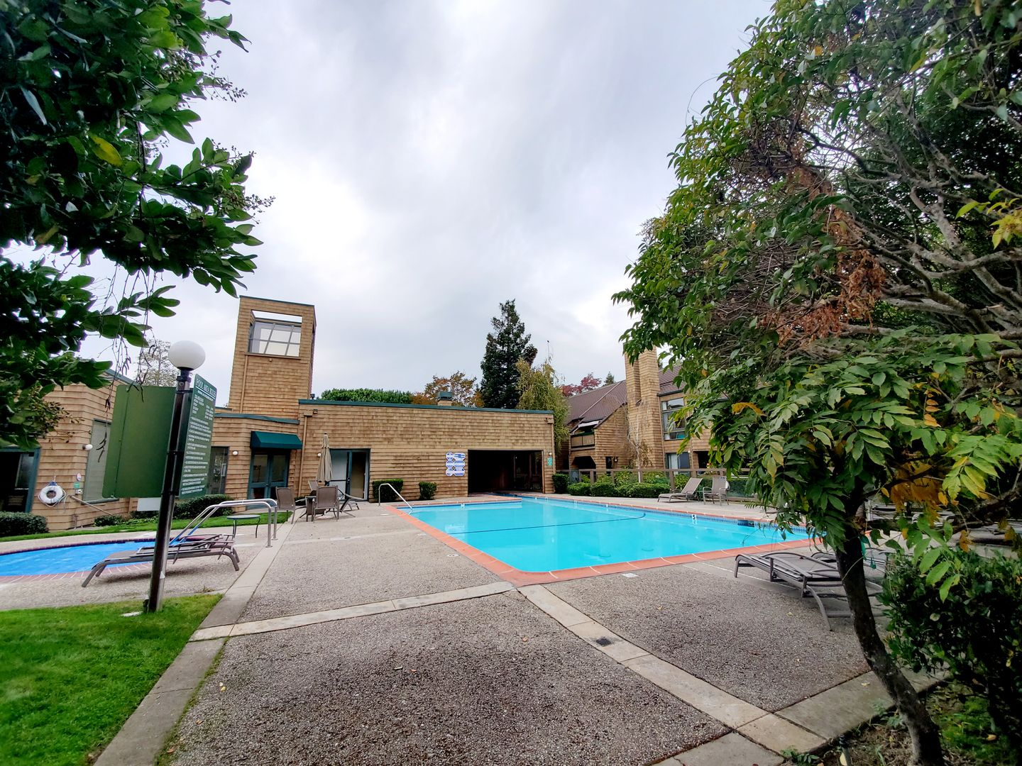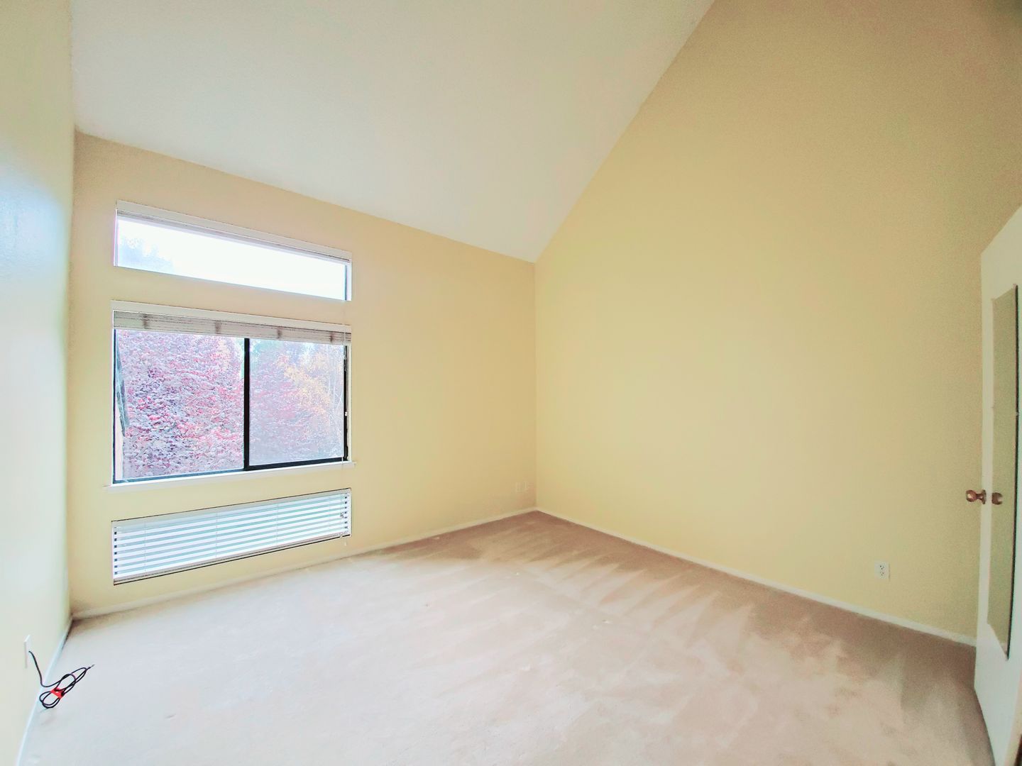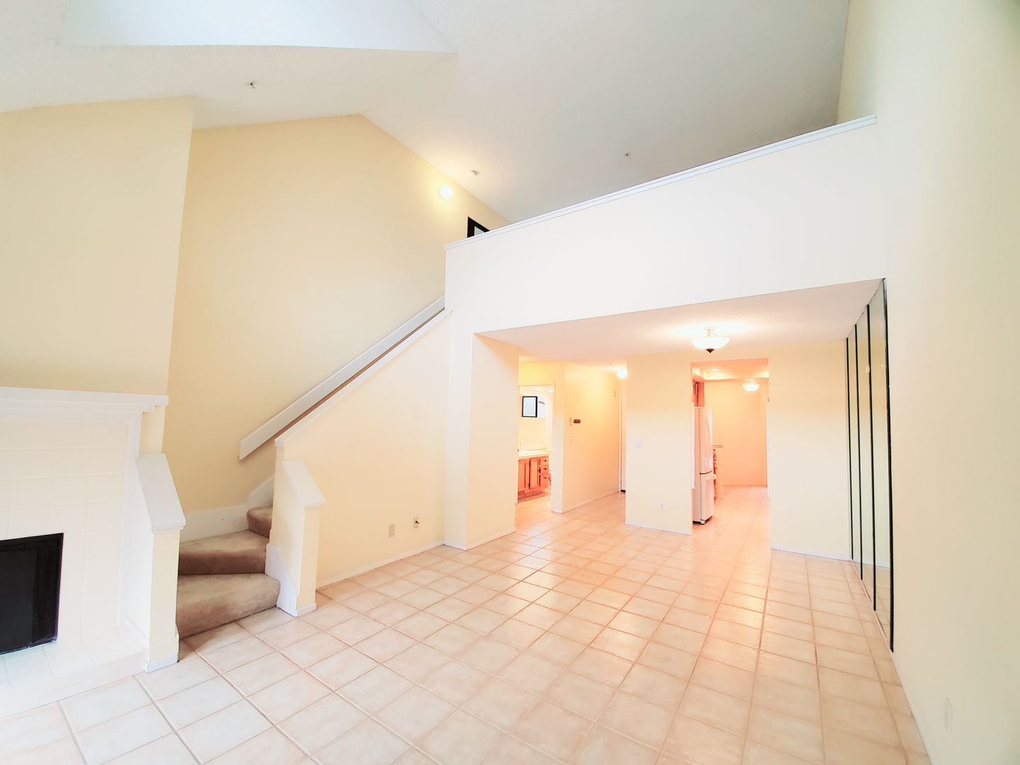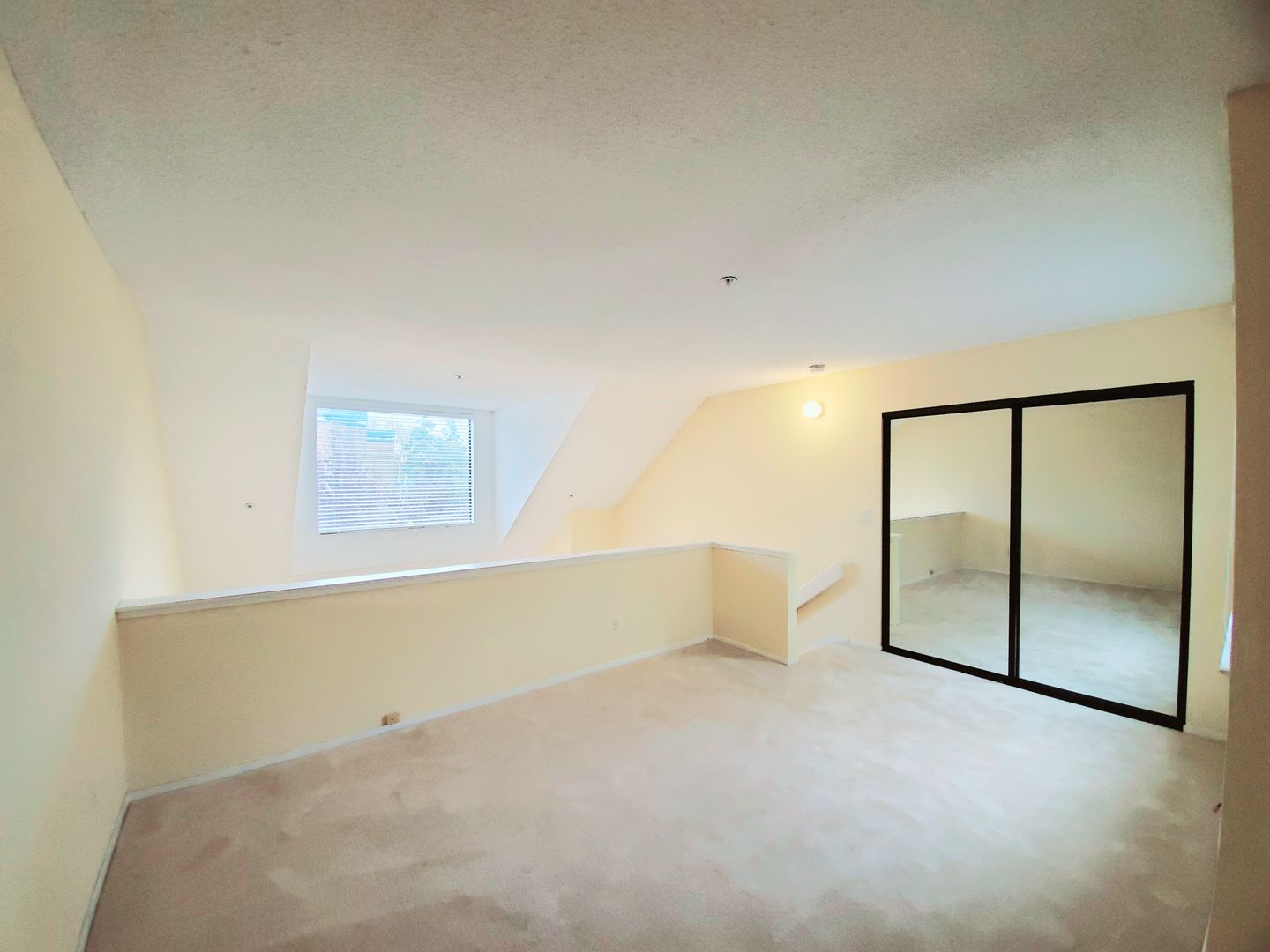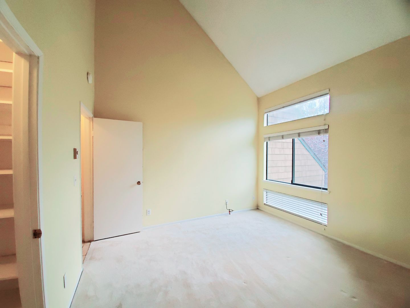 This 2 bedroom, 1 bath in the desirable Pelican Cove complex of Redwood Shores, on the 2nd floor (stairs leading up to the unit). Enjoy wonderful amenities and grounds at the complex including pool, plentiful parking and access to a dock/trails along the water. The unit has high ceilings, master bedroom has a large walk in closet, 2nd bedroom is loft style with a large closet. Private washer dryer is just off of bathroom. Kitchen as small eat-in nook for table. Living room has a cozy wood burning fire place. Water and garbage are including along with 1 covered assigned parking space and use of amenities at complex. Fantastic location for easy commuting up and down the Peninsula or easy access to the bay trail. No pets, no smoking, 1 year lease