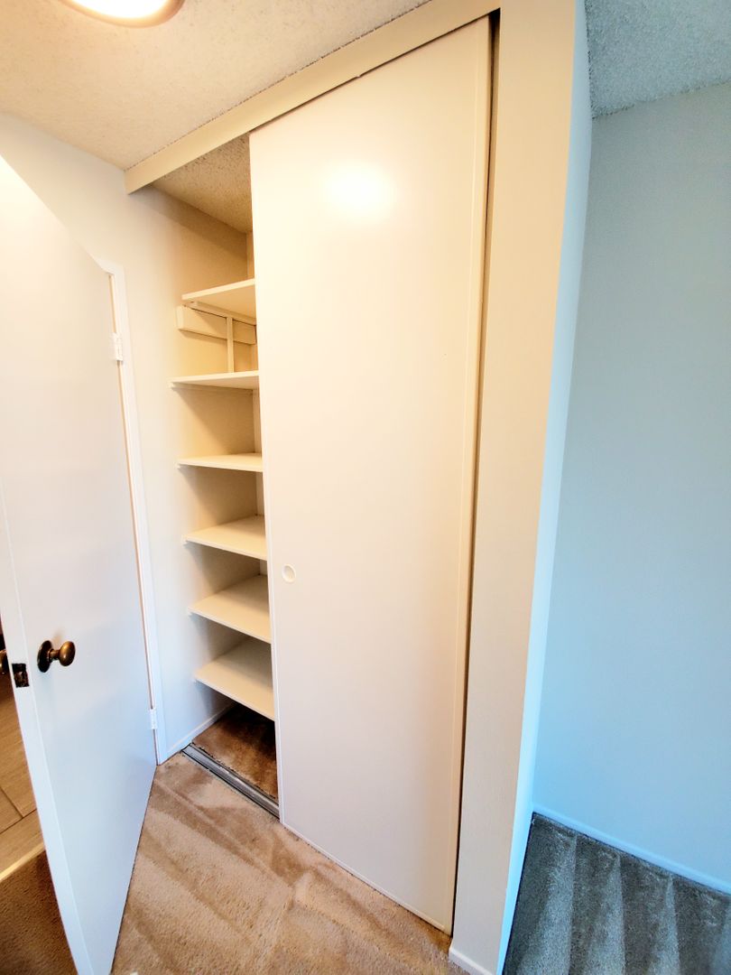 Enjoy outdoor privacy in this penthouse/top floor Woodlake unit with large sunny deck. Big open kitchen with granite countertops and full appliance overlooks sunny living room. Remodeled bathroom has a large vanity and nice cabinet storage. Bedroom has two closets including a walk in. Water, garbage, one assigned parking space and an external storage (right off of deck) is all included in the rent. Woodlake has amazing amenities: pools, tennis courts, gym, Jacuzzi, saunas. Location is fantastic - easy commute on 101 or 92, walking distance to Burlingame avenue, Cal Train, coyote point regional park, the bay trail, many restaurants, stores and more.